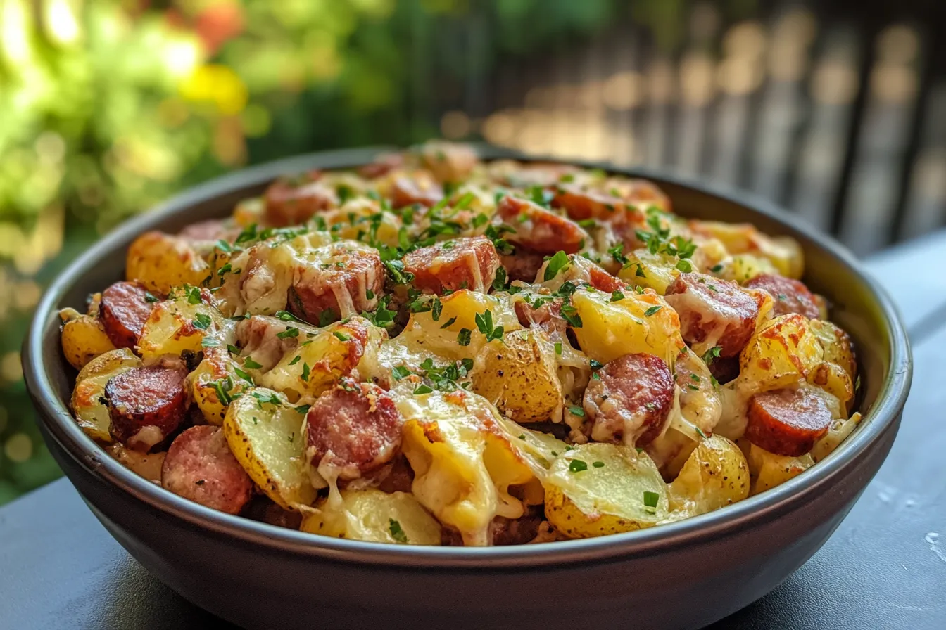 Discover the ultimate comfort food Cheesy Ranch Potatoes and Smoked Sausage This easy recipe packs flavor and satisfaction in every bite