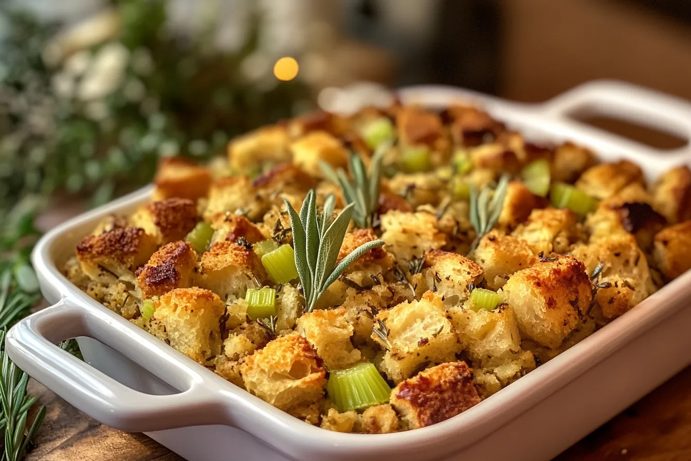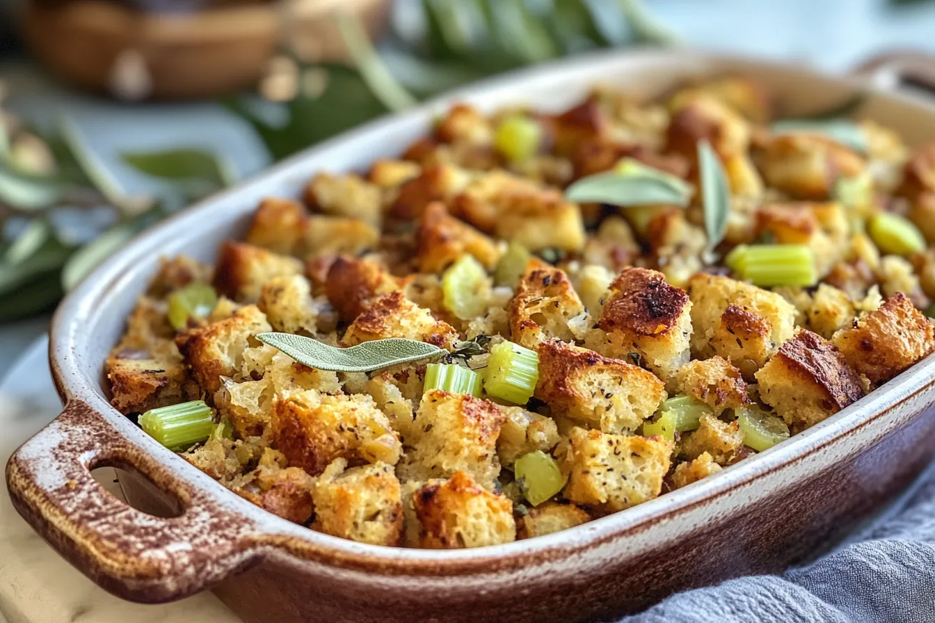 Delight in this Savory Classic Homemade Stuffing with Sage and Celery Perfectly seasoned and easy to prepare its a musthave for your holiday table