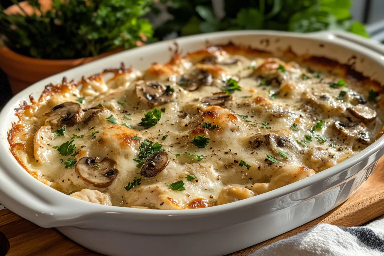 Deliciously Simple Creamy Mushroom Chicken Bake Recipe