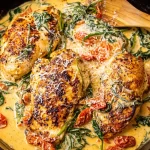 Creamy Tuscan Chicken stands out for its rich blend of flavors and textures. This irresistible dish combines juicy chicken breasts with a luscious cream sauce, infused with sun-dried tomatoes, fresh spinach, and aromatic garlic. The secret to its depth lies in the harmonious marriage of Italian herbs, which elevate simple ingredients into a gourmet experience.